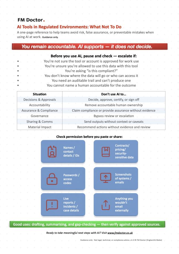 FM Doctor helps operational and leadership teams decide where AI is worth pursuing, where it is not, and what a safe starting point looks like.